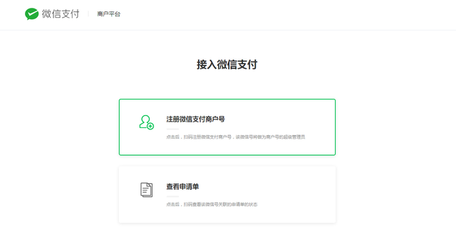 1、搜索“微信支付”進(jìn)入平臺(tái),點(diǎn)擊右上角“接入微信支付”綠色按鈕。